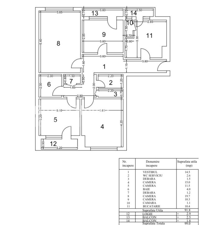 Imobilul dispune de o suprafata totala de 99mp, incaperi spatioase, luminoase, eficient compartimentat.
