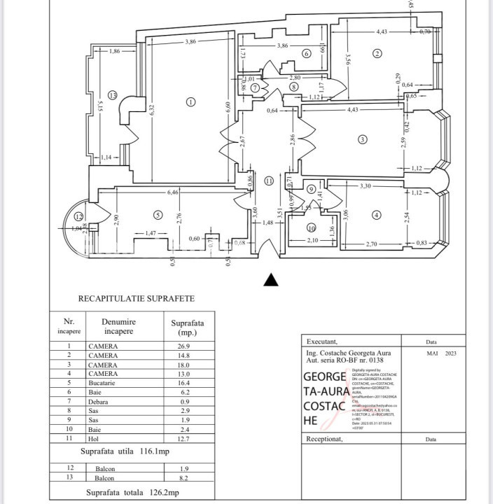 Situat pe Blv Unirii cu acces stradal, apartamentul se remarca printr-o compartimentare eficienta, unul dintre cele mai spatioase imobile din zona , cu o suprafata utila de 116mp si doua terase de 10mp, rezultand un total de 126mp.