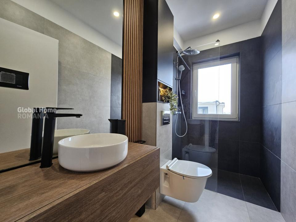 Vila este orientată Est–Vest, asigurând lumină naturală pe tot parcursul zilei și un ambient cald, primitor. Proprietatea este complet mobilată și utilată, amenajată cu bun gust, într-un stil elegant și aerisit, fiind pregătită pentru mutare imediată.
