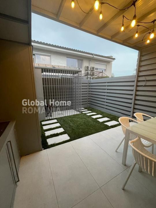 La exterior, casa oferă curte privată amenajată, sistem de degivrare pentru zona pavată ce previne acumularea de zăpadă și umezeală, precum și 2 locuri de parcare incluse.