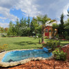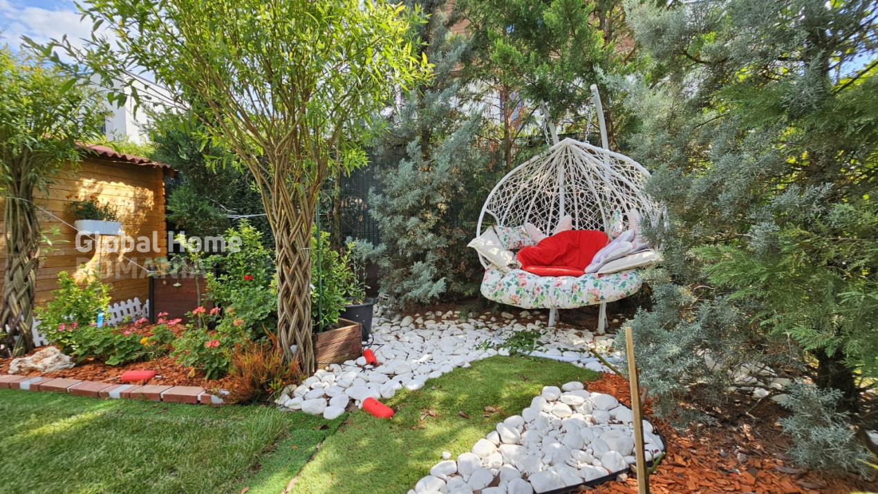 Grădina a fost amenajată cu investiție de peste 30.000 EUR și include: deck extins, instalație pentru jacuzzi, sistem aspersoare și picurare reglabilă, 2 palmieri, 22 de chiparoși aurii, argintii și verzi, 50 de tufe perene aromate, 12 trandafiri, alte 27 de plante decorative, sistem de iluminat ambiental, robot de tuns iarba, șezlong dublu, căsuță de unelte. Orientare sud cu vedere directă la pădure.