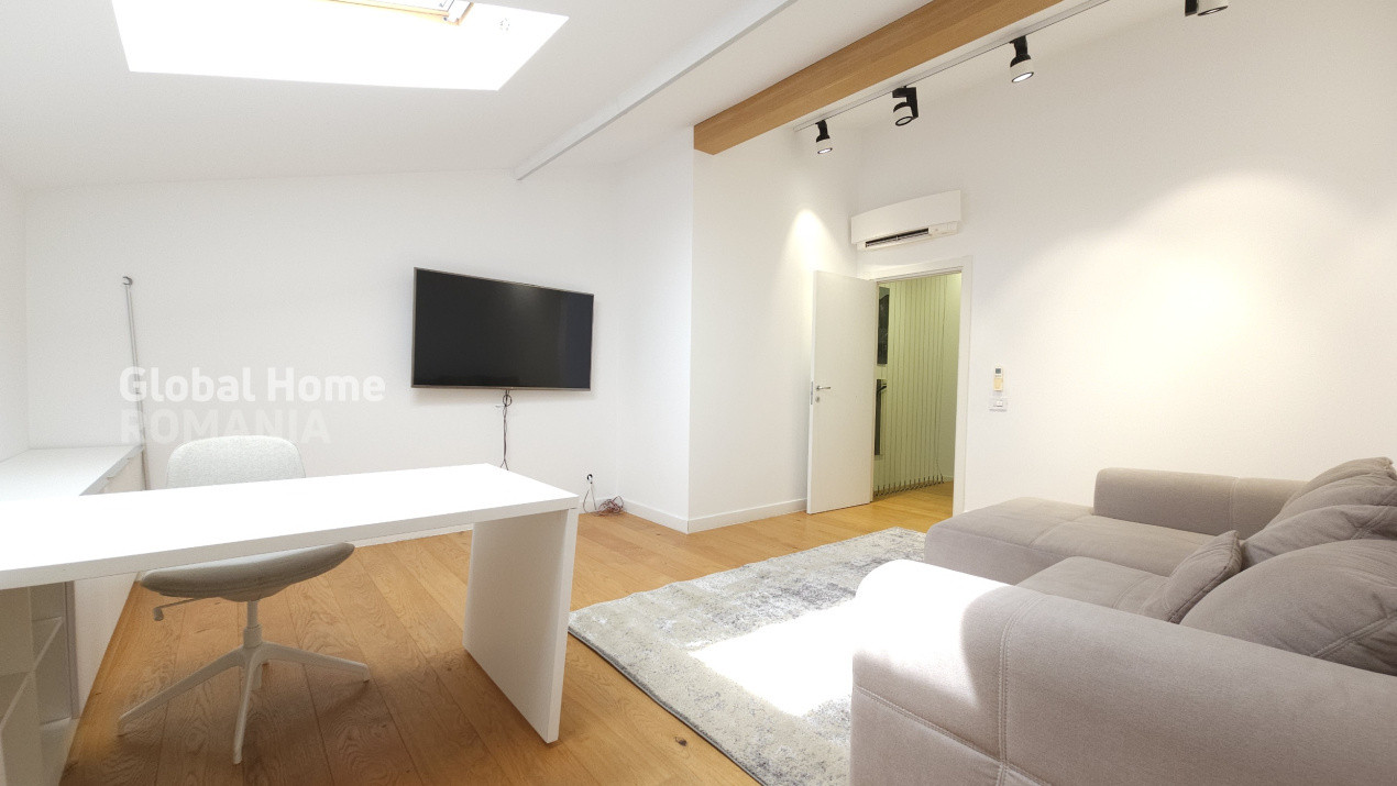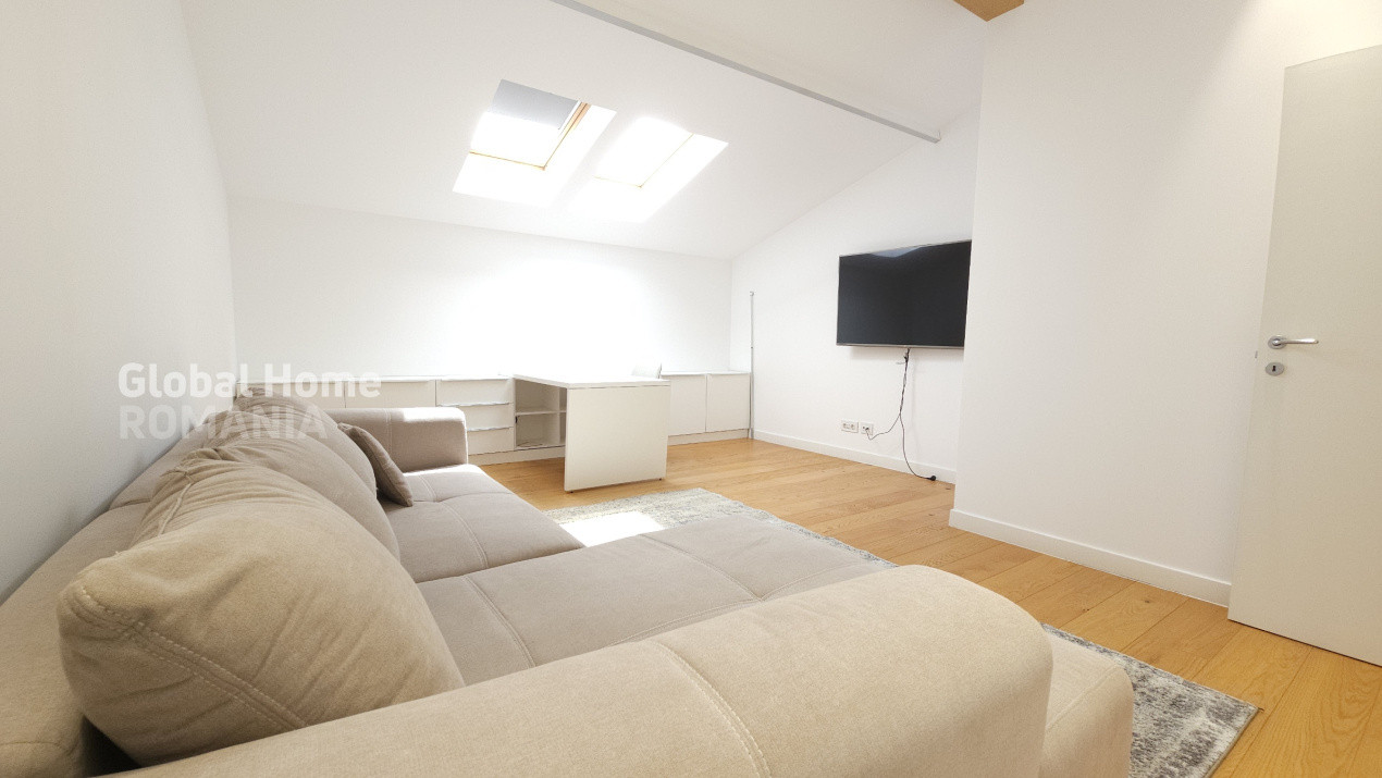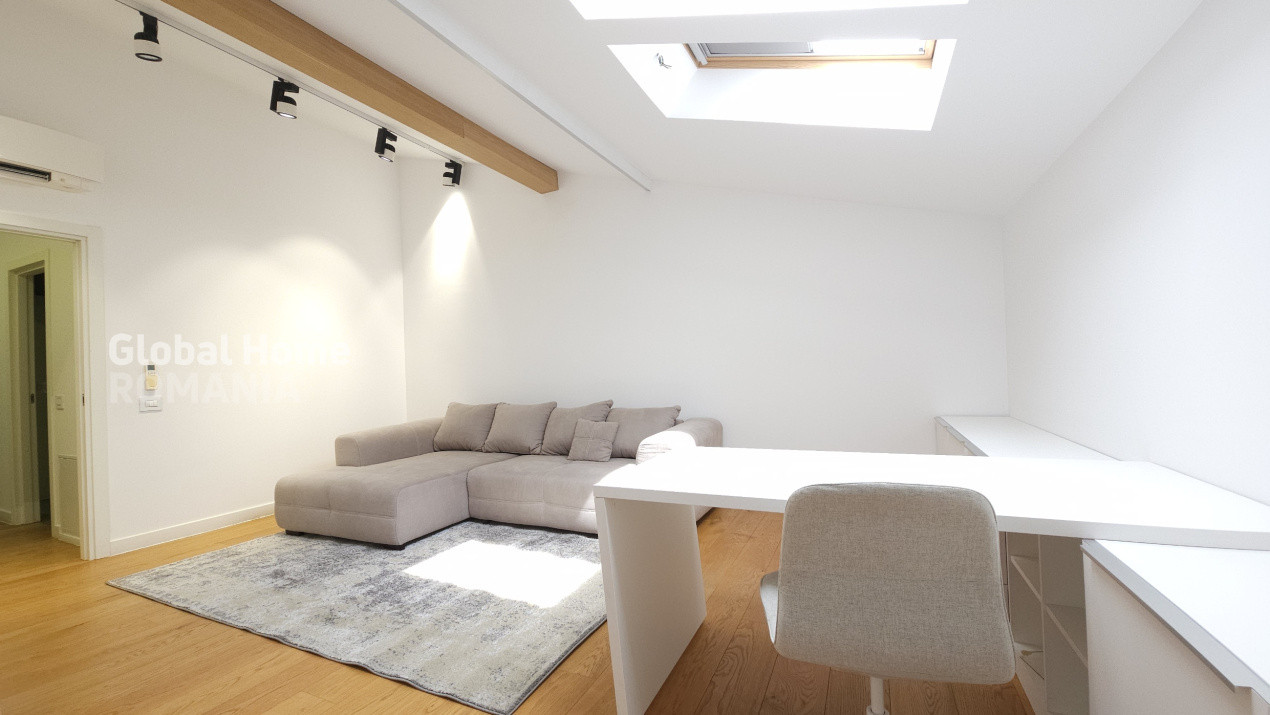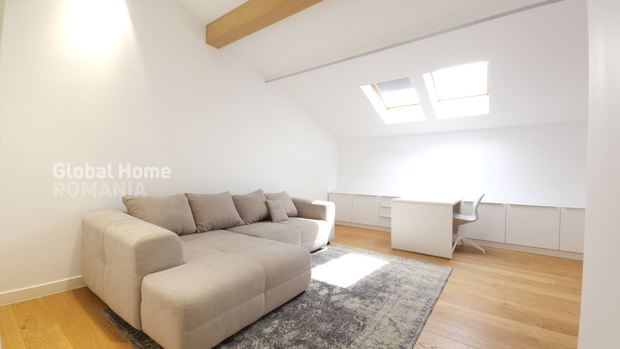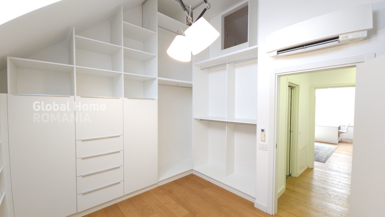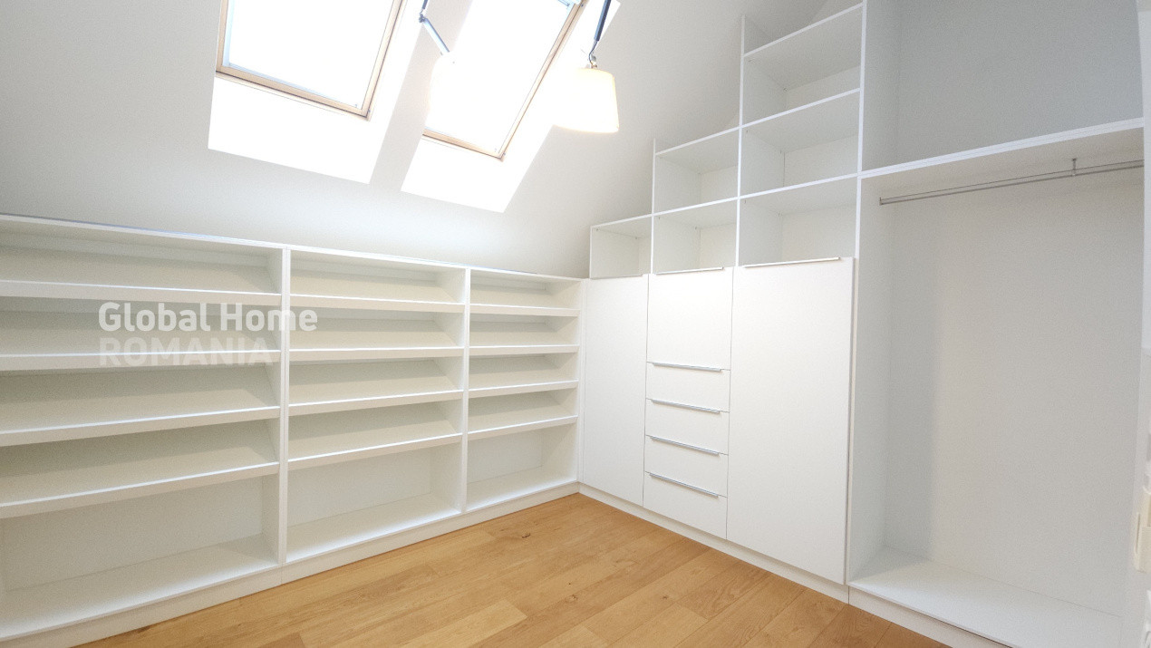 Proprietatea este dispusa P+2 si beneficiaza de un living generos cu zona pentru dining si o bucatarie complet mobilata si utilata in zona de parter, etajul 1 dispune de 2 dormitoare si o baie generoasa utilata cu cada si cabina de dus walk-in iar la etajul 2 regasim o camera amenajata cu dressing si spatii de depozitare multiple, o baie si un birou generos ce dispune si de o canapea extensibila.