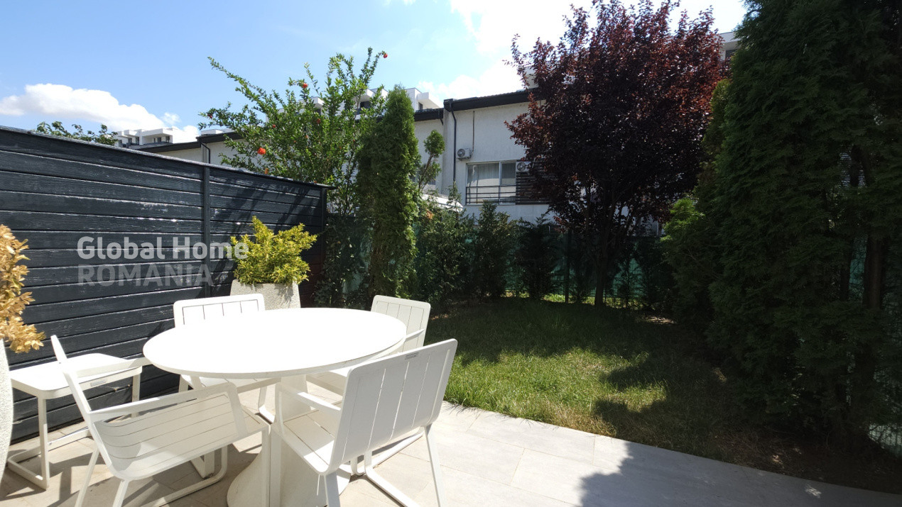Curtea este in suprafata de 30 MP si beneficiaza de o gradina superba in care este inclusa si o terasa acoperita.