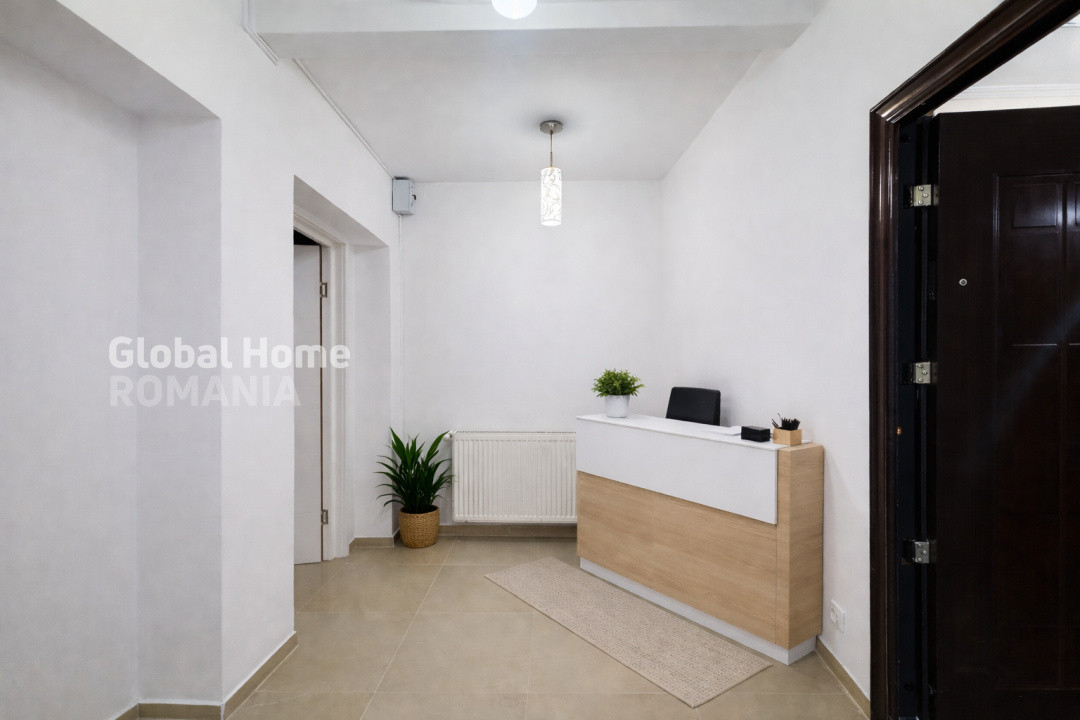 - vestibul (5,5 mp) – potrivit pentru recepție sau zonă de așteptare